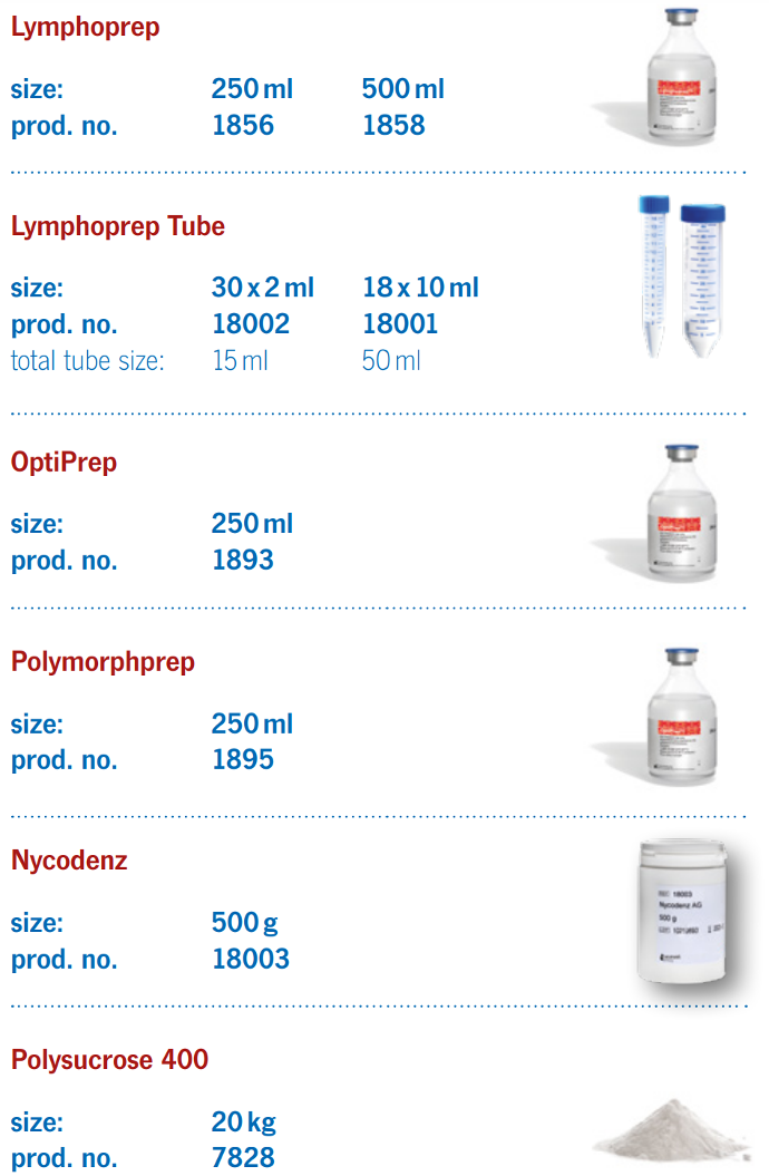 Welcome to Axis-Shield Density Gradient Media, a product group within Axis-Shield PoC. Our company has more than 35 years experience in production and marketing of Density Gradient Media.