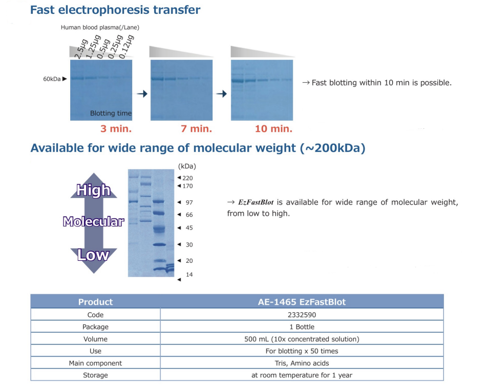AE-1465 EzFastBlot I WSE-EzFastBlot HMW: A High-Speed Transfer Buffer for High Molecular Weight Proteins